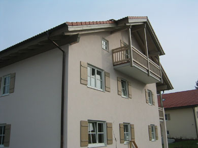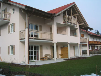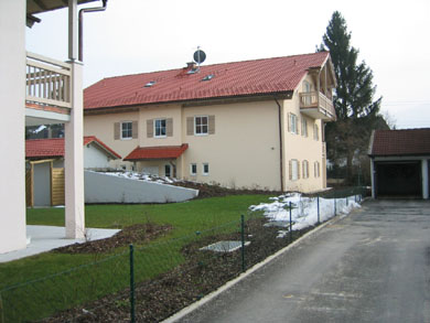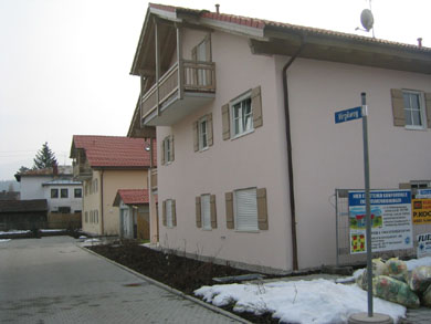 Nachfolgend sehen Sie ein Bauvorhaben, bestehend aus 2 MFH in Massivbauweise mit insgesamt 13 WE, 13 Kellern, 7 oberirdischen Stellplätzen und 13 TG-Einzelparkern, errichtet auf einem 1.577 qm großen Grundstück nahe dem Ortszentrum im Markt Teisendorf, Landkreis Berchtesgadener Land, Bundesland Bayern.